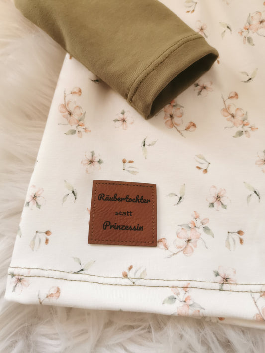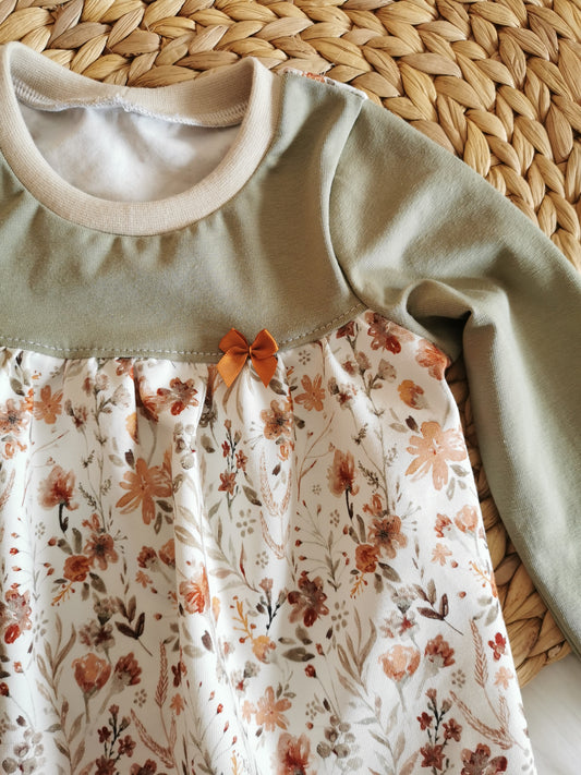Rüschenshirt Kirschblüten apricot olivgrün Gr. 98 (2-3 Jahre)