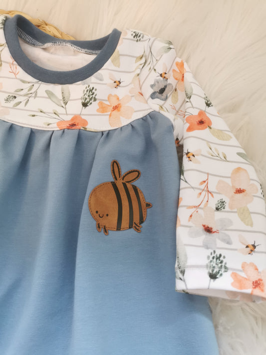 Rüschenshirt Sommerwiese rauchblau Gr. 80 (10-12 Monate)