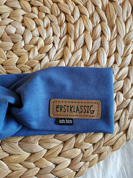 Haarband "Erstklassig" jeansblau KU 51-52cm (4-6 Jahre)