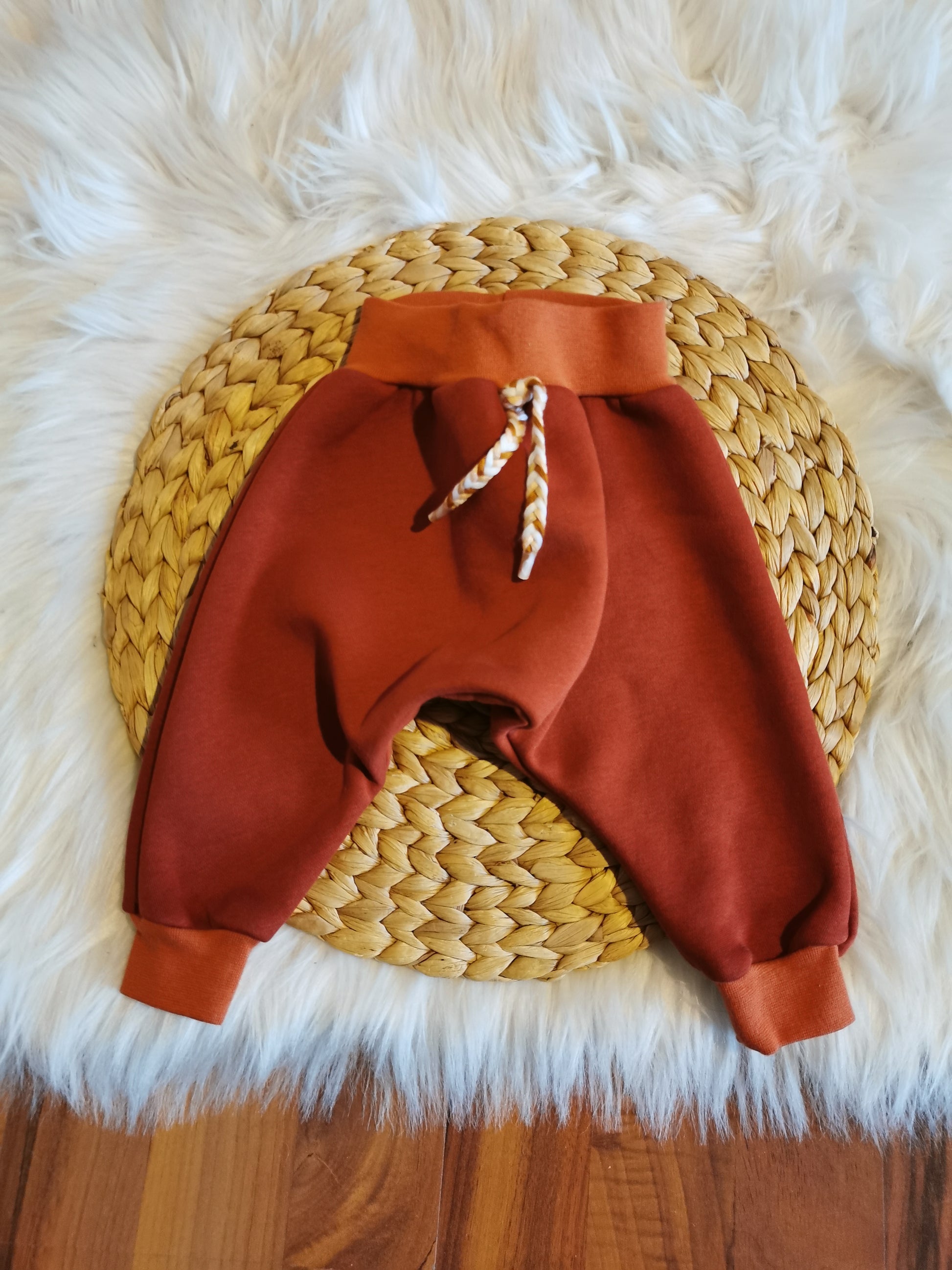Diese kuschelige Pumphose aus weichem angerautem Sweatstoff ist perfekt für den Winter geeignet. Durch ihren lockeren Schnitt ist sie auch ideal für Stoffwindeln nutzbar. Mit angenähter geflochtener Kordel.