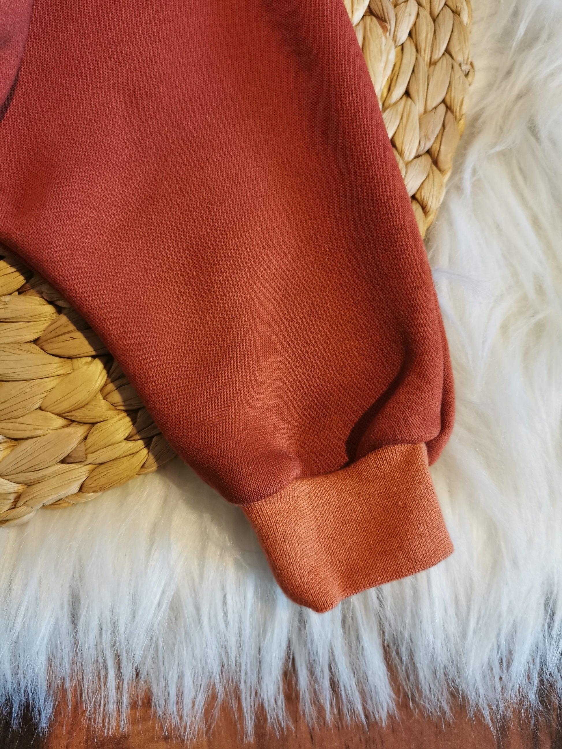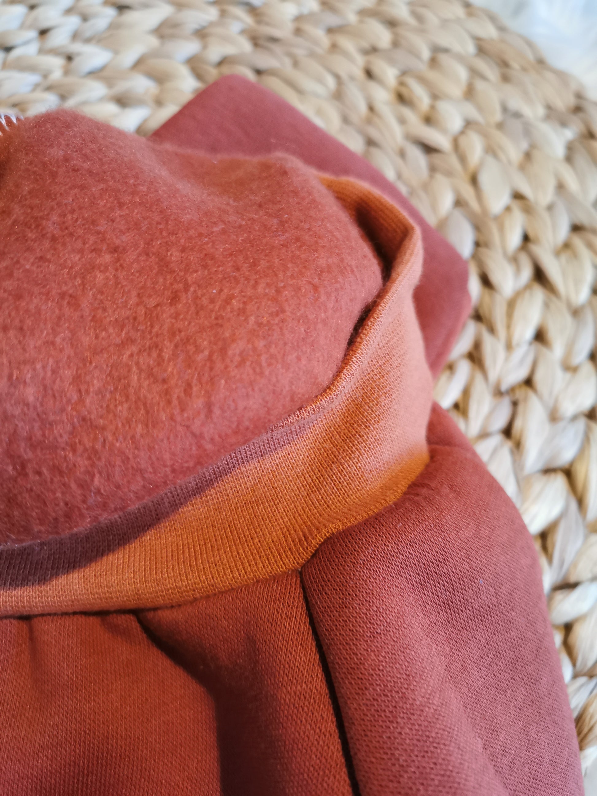 Material: Alpenfleece (65% Baumwolle, 35% Polyester), Bündchenstoff (95% Baumwolle, 5%Elasthan)