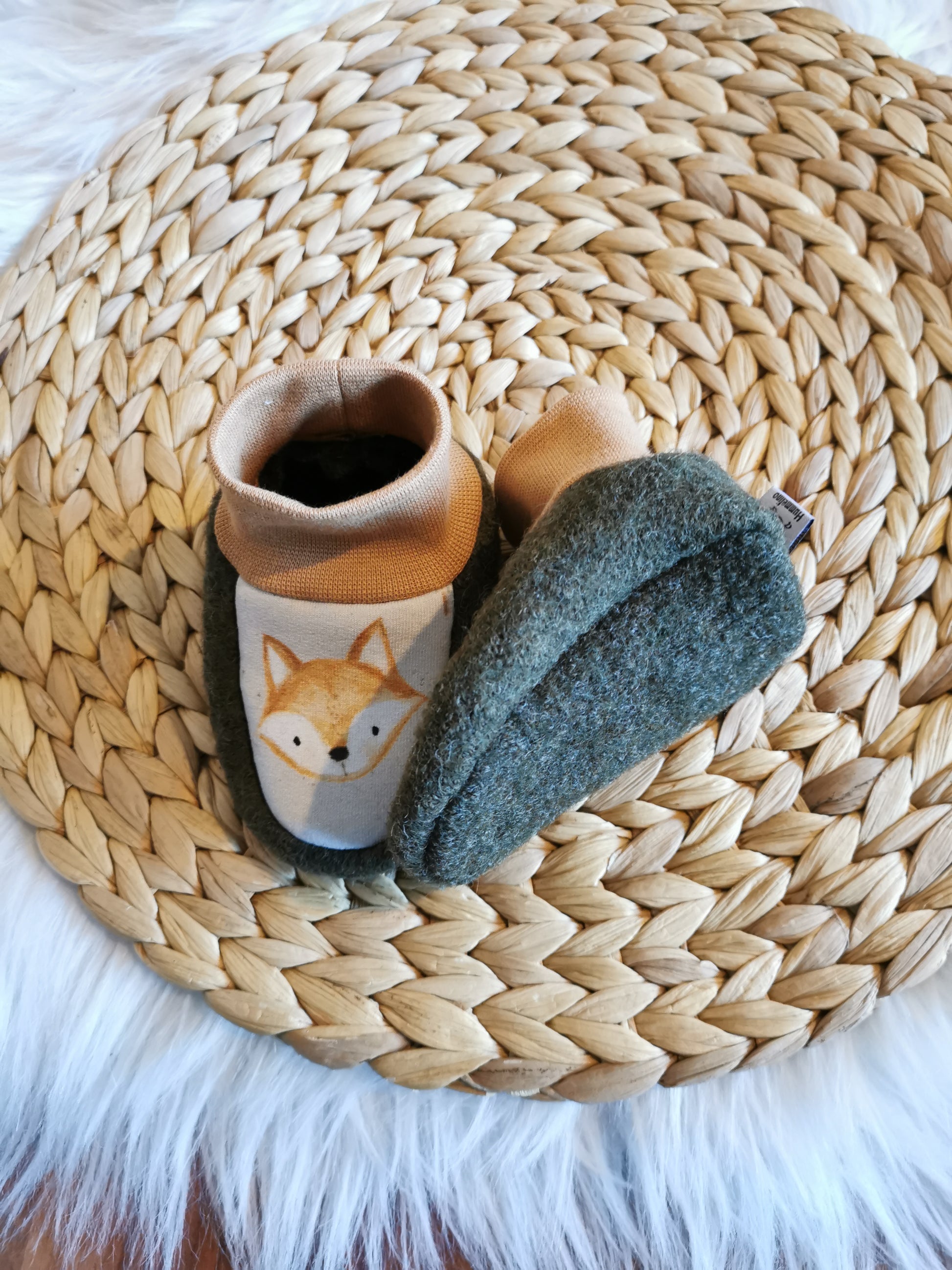 Walkpuschen Fuchs olivgrün Gr. 18 (7-9 Monate)